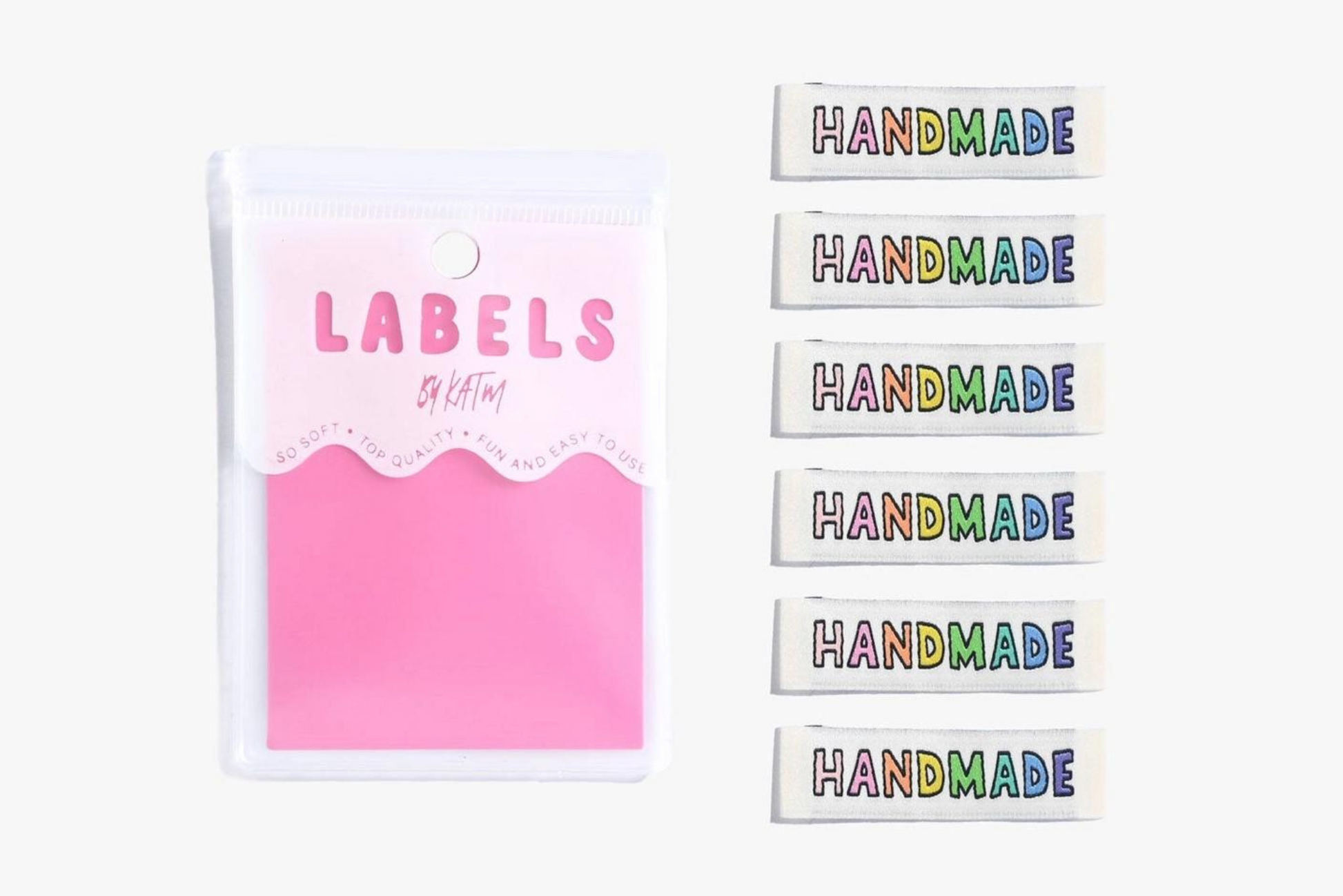 Add a cute colour pop to the inside of your sweaters with these Handmade rainbow labels! End fold labels are ideal for attaching to knitted fabrics, sewn onto the garment by top stitching each end.