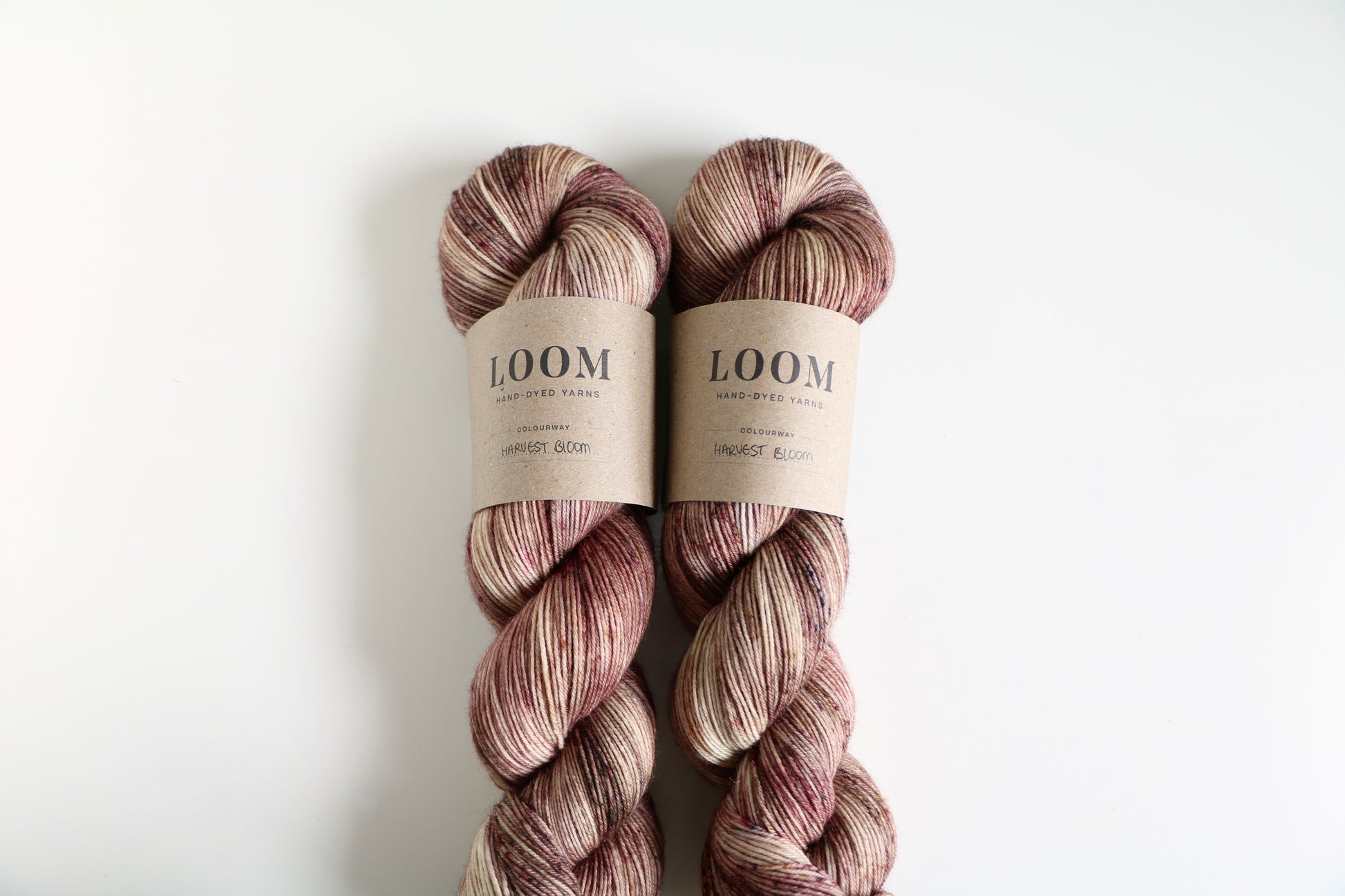 Harvest Bloom features a dark burgundy brown speckle with touches of golden yellow, truffle and cream.