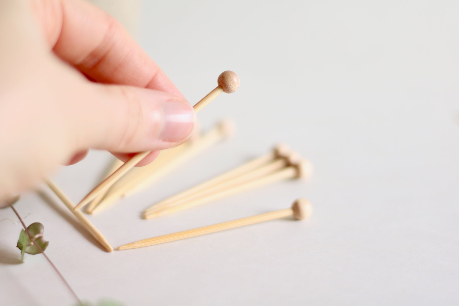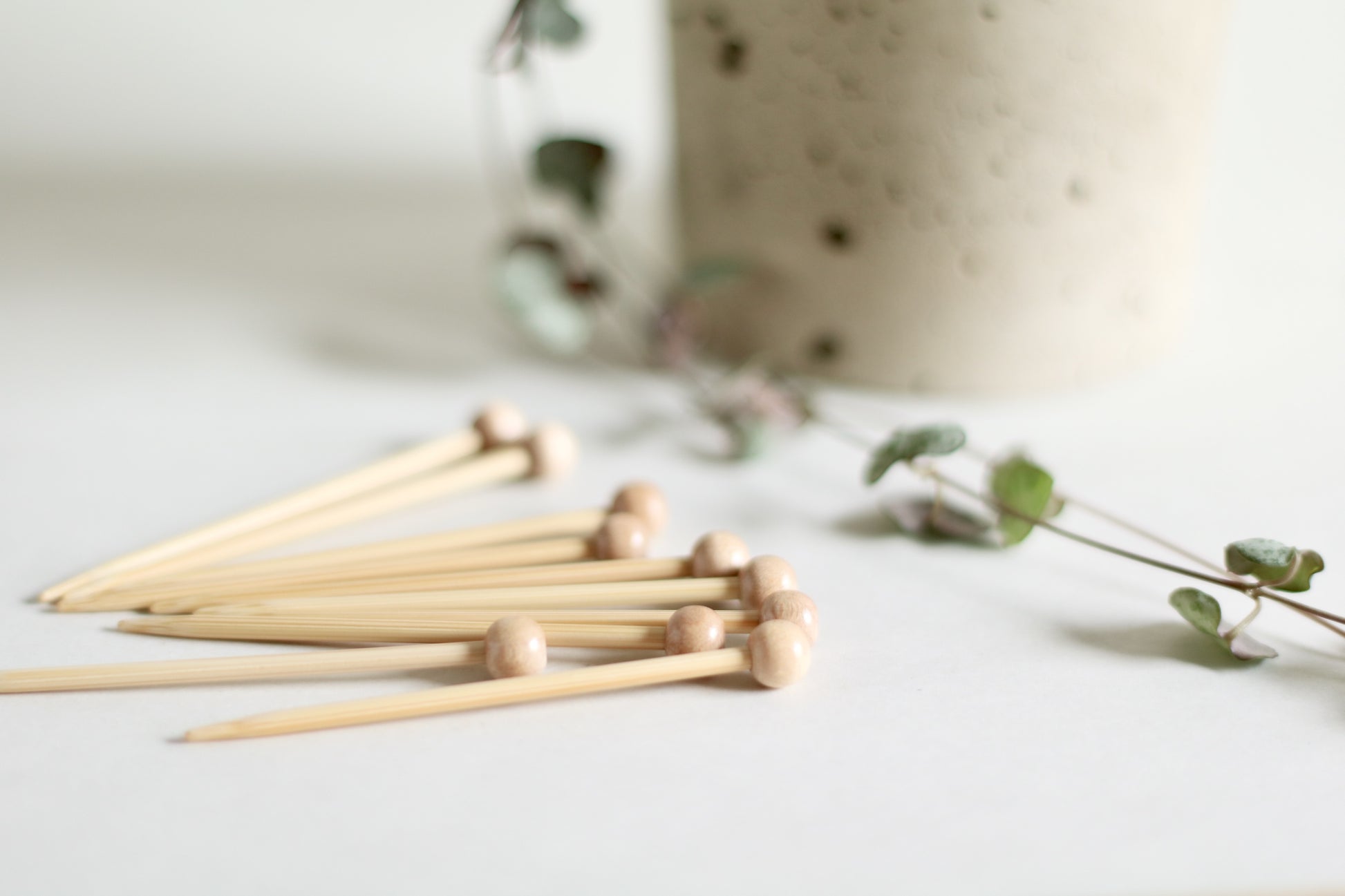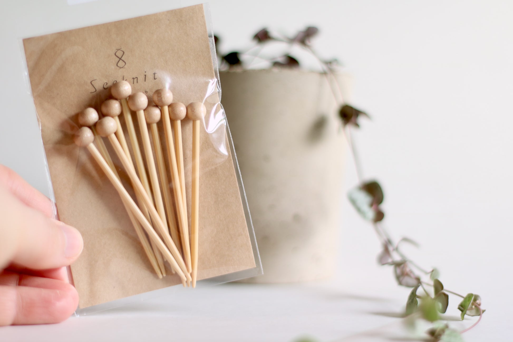 Made in Japan from Moso and Madake bamboo and polished with plant wax. They're soft, smooth and kind to your knits.