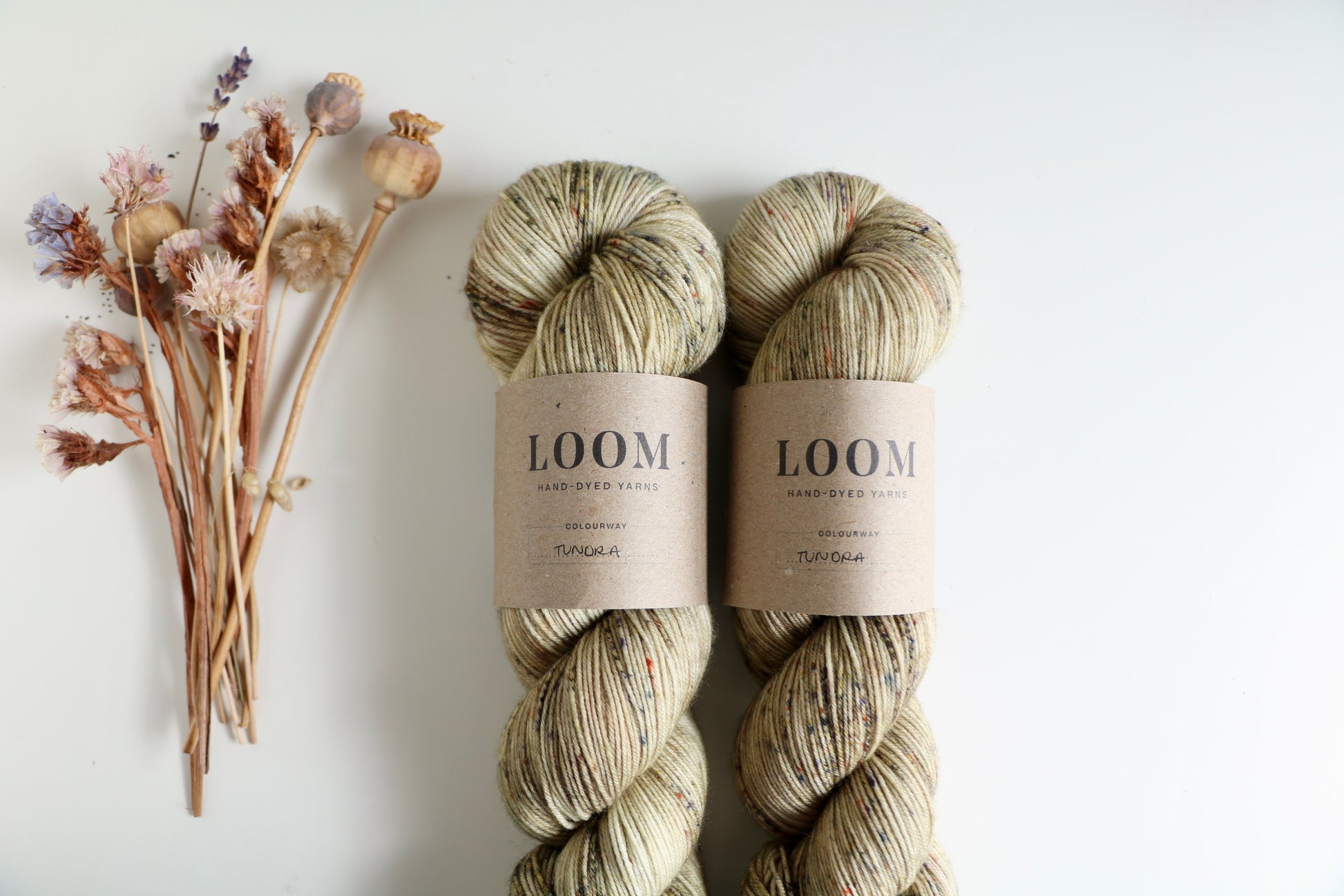 Tundra features a subtle background of khaki green and brown, with a dust of moody speckles.